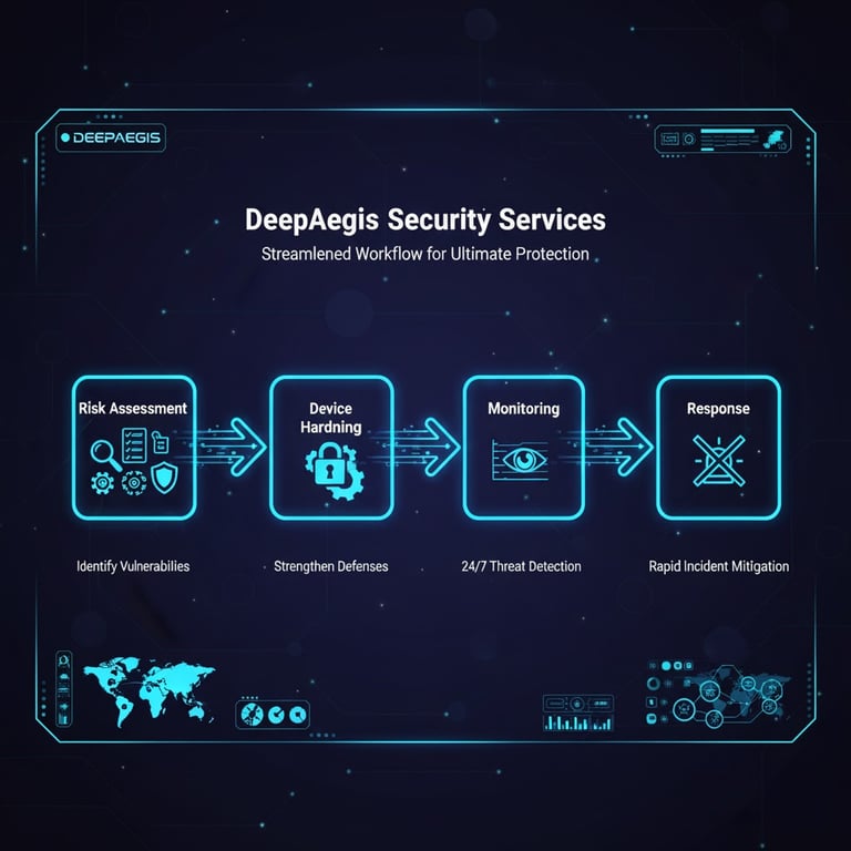 DeepAegis delivers end-to-end IoMT security solutions designed for healthcare environments.
